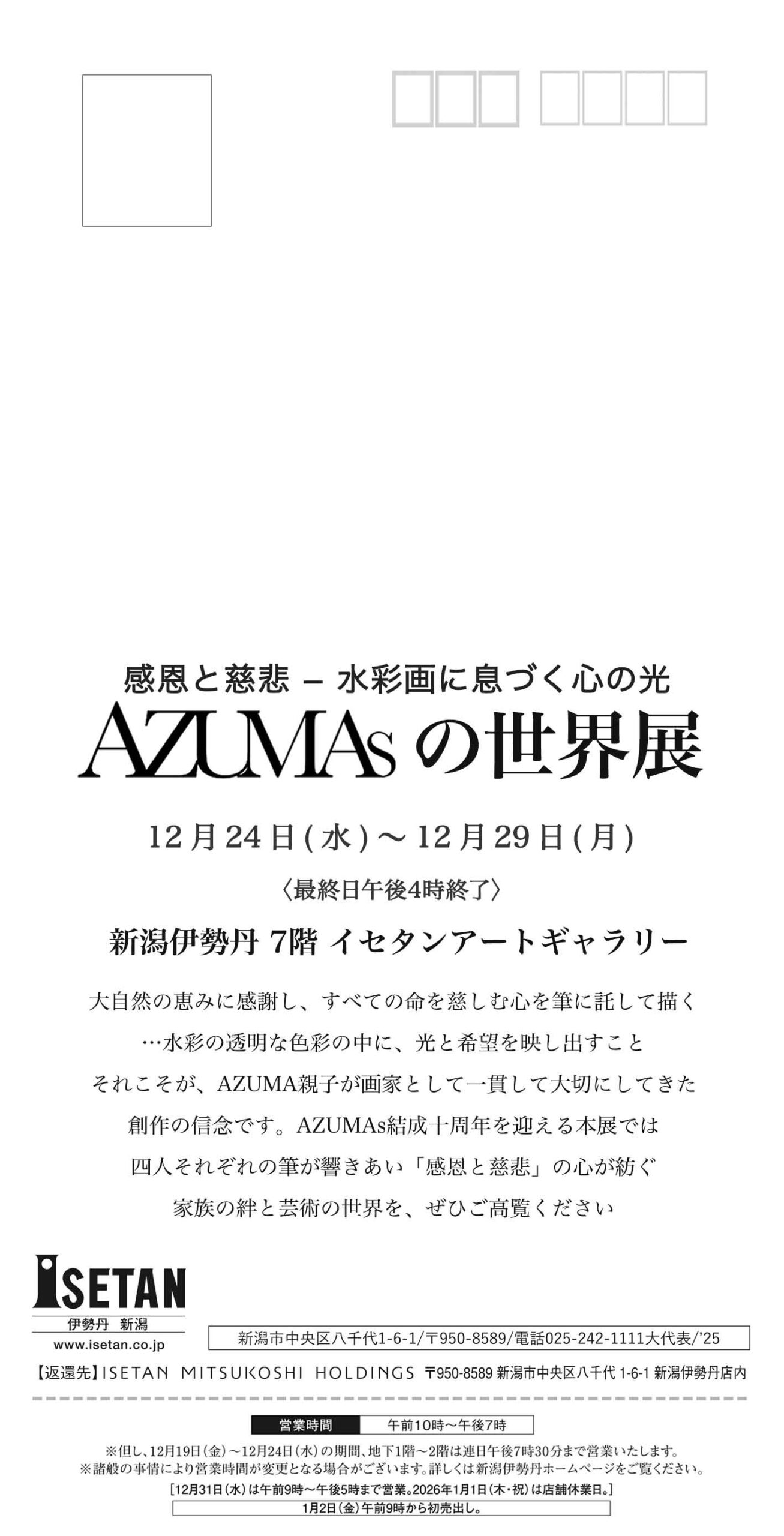 「AZUMAsの世界展」2025 開催のお知らせ。新潟伊勢丹7階にて